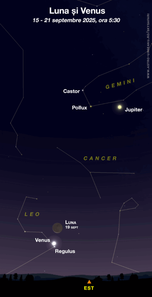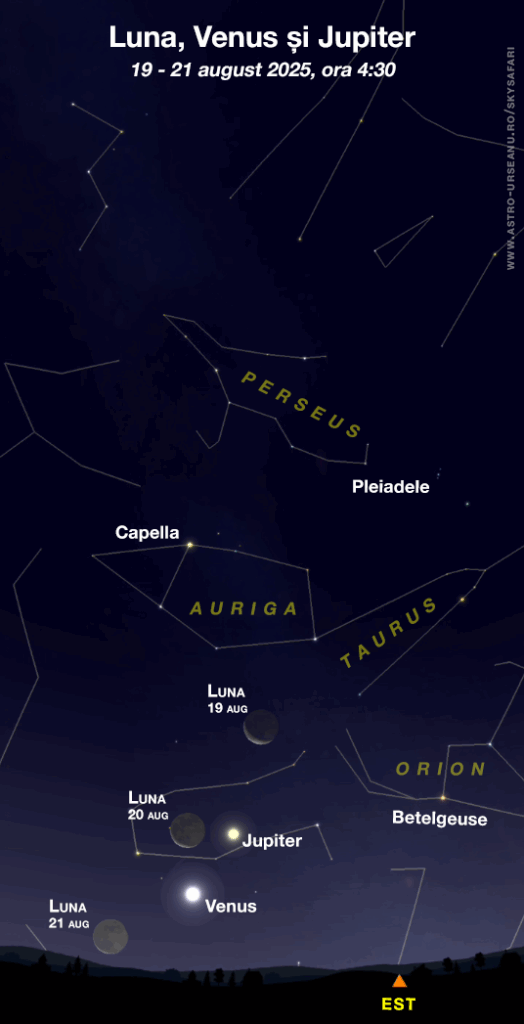 Seara se văd Venus, Saturn și Jupiter. Luna apare și ea pe cerul de seară.