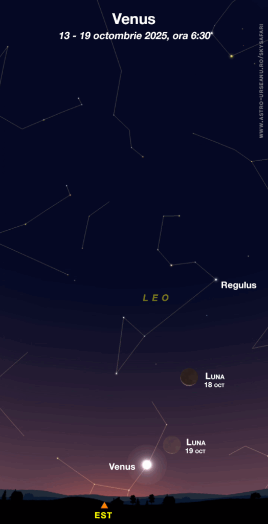 Luna se află în preajma planetei Venus, iar Venus în preajma stelei Regulus