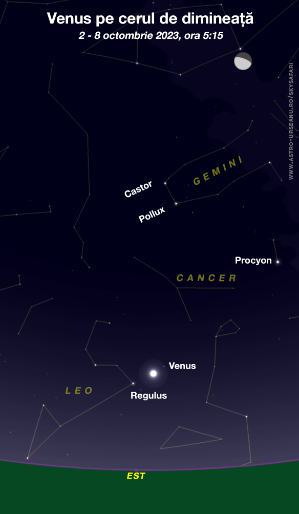 Pe 23 octombrie Venus se află la cea mai mare depărtare unghiulară de Soare (elongație maximă vestică). Se vede înainte de răsăritul Soarelui, înspre est.